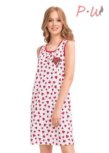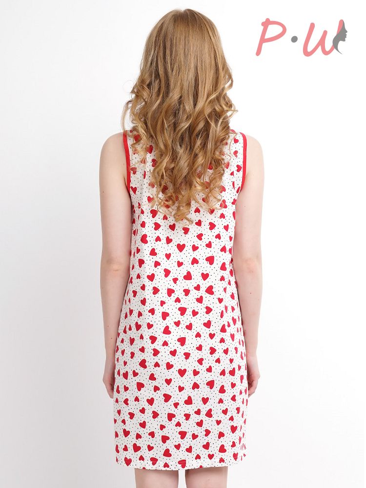 Описание: Ночная сорочка из кулирки.По переду нефункциональная планка на две пуговицы с отделочным кантом.Горловина и проймы обработаны отделочной окантовкой.Понизу боковых швов разрезы.Декоративное сердце на изнаночной стороне спинки.Тематический принт-глиттер.