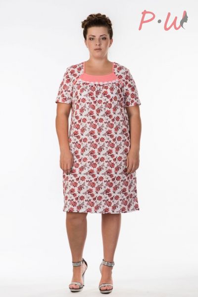 Описание: Трикотажная ночная сорочка длиной ниже колен, с короткими рукавами и овальным вырезом горловины. Модель изготовлена из натуральной ткани кулирка и декорирована интересным сочетанием принтов. Ночная сорочка - это удобная и практичная вещь, которая прекрасно дополнит ваш домашний гардероб.