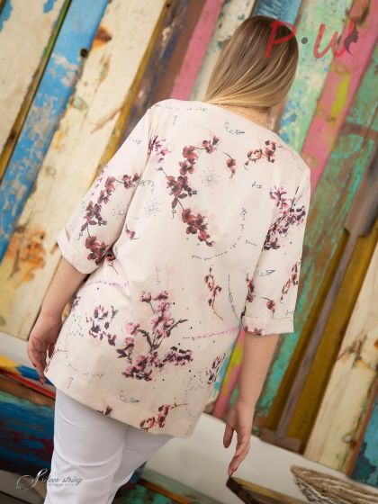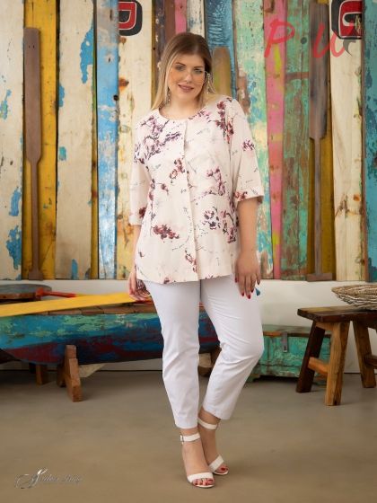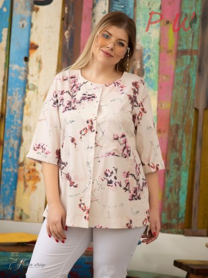 Описание Стильная блуза полуприлегающего силуэта изготовлена из эластичной ткани с высоким содержанием хлопка. Изделие с округлой линией горловины, без воротника. Рукав втачной, длиной 3/4. По борту расположена супатная застежка на пуговицы. В боковых швах блузы обработаны разрезы. Модель выполнена с учетом особенностей фигуры дам нестандартных размеров, позволяет подчеркнуть их достоинства и завуалировать возможные недостатки.: