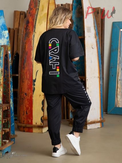 Описание: Ультрамодные брюки-джоггеры изготовлены из эластичной ткани с высоким содержанием натурального волокна. Отличительная черта модели - эластичный пояс и отсутствие застежек. Помимо эластичной тесьмы по поясу проходит шнур-затяжка. Силуэт модели сформирован за счет эластичной тесьмы, проложенной по низу брюк. Яркие принты расположены на разной высоте вдоль боковых швов. При изготовлении принтов используется специальный пластификатор, который позволяет рисунку выдерживать длительную эксплуатацию изделия. Это самые удобные брюки для повседневного ношения.