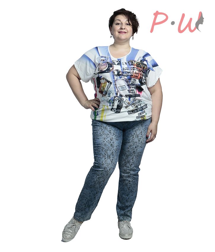 Описание: Джинсы высокая посадка. Застежка молния и пуговица. На поясе вставки- резинки для лучшей посадки. Спереди имитация карманов. Сзади накладные карманы. Орнамент.