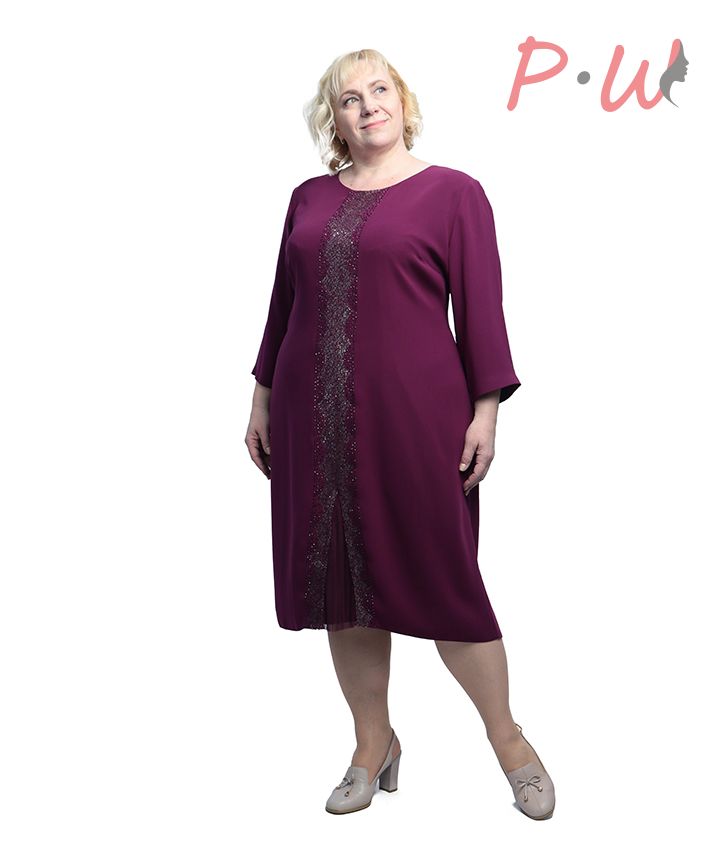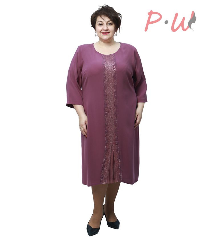 Описание: Платье полуприлегающего силуэта, с рукавами ¾. Полочка украшена стразами.