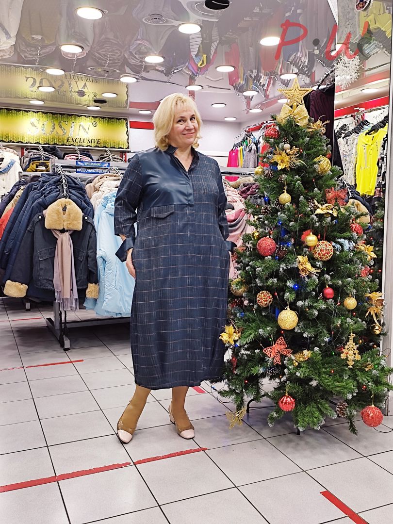 Описание: Платье прямого силуэта, зауженное к низу(балон), втачной рукав- длина 3/4, частично отрезной манжет из экокожи , застежка пуговицы под планкой вдоль всего