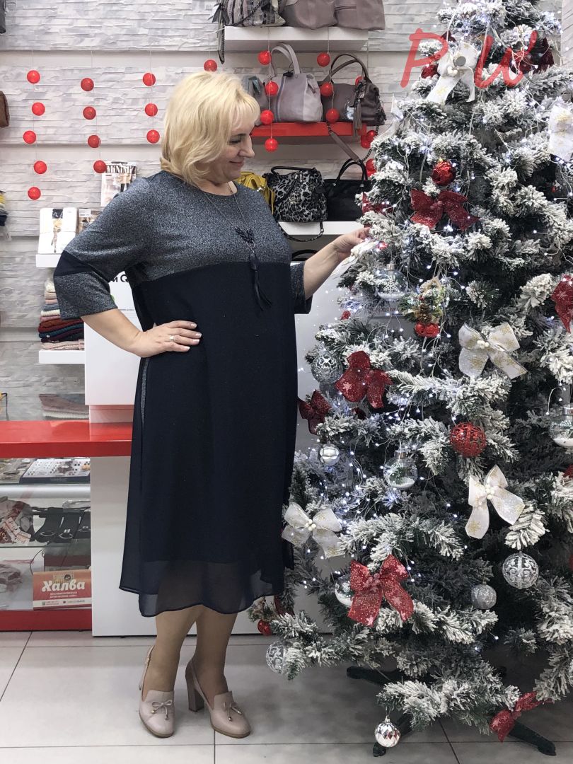 Описание: Платье прямого силуэта , трикотажное полотно с люрексной нитью , шифоновая имитация многослойности ,рукав втачной. круглый вырез