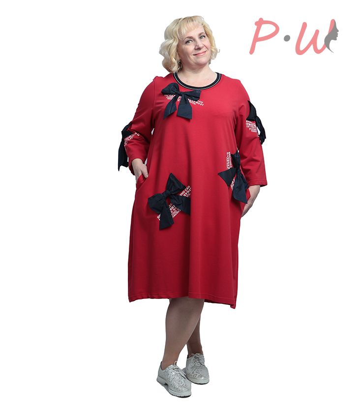 Описание: Платье свободного силуэта, круглый вырез, рукав втачной 3/4, бантики.