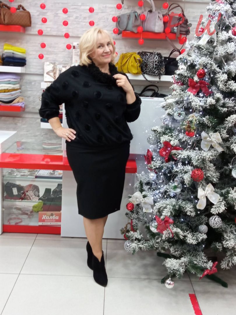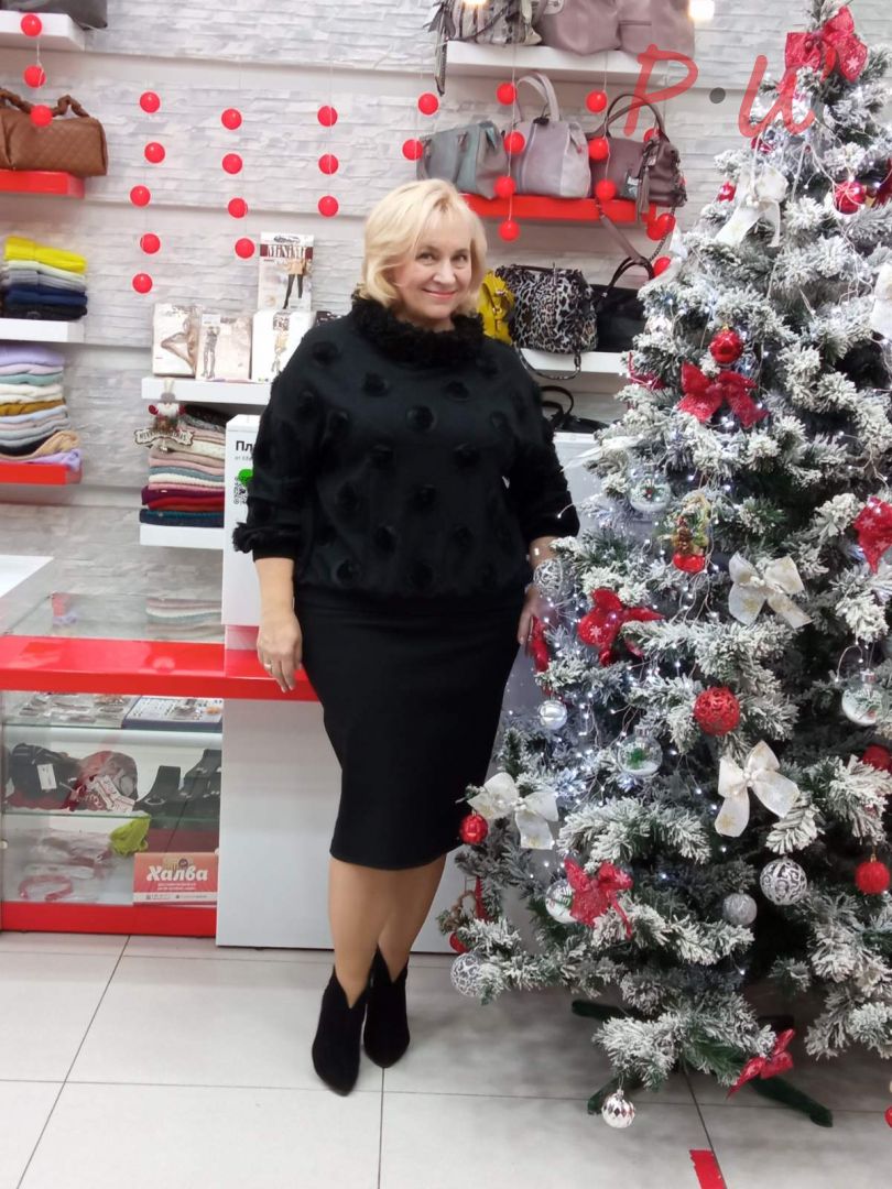 Описание: Джемпер из трикотажного полотна, спущенная линия плеча, рукав на манжете, ворот -хомут -имитация каракуля, по всему изделию украшение в виде нашивных 3D цветов
